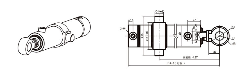 活塞桿端為內(nèi)螺紋桿頭耳環(huán)連接