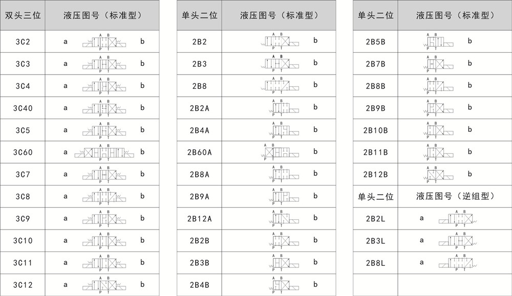 電磁閥閥芯機(jī)能表